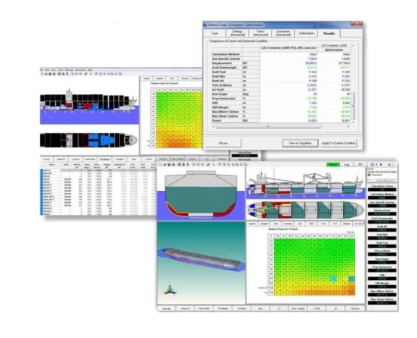 The trim optimization tool combines standard regulatory features with powerful optimization routines to provide an efficient, optimized and achievable condition that reduces power and fuel consumption. Other tools may suggest draft and trim targets that are not operationally attainable, or that do not meet regulatory compliance. The CargoMax trim optimization tool provides specific solutions at the touch of a button that are customized for the specific loading and regulatory requirements of the vessel.